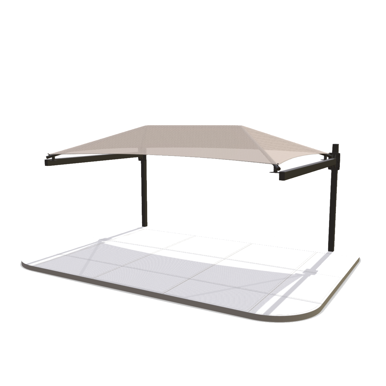 The Hanging Cantilever is a great shade structure for carports, pathways, pool patios, and parks. The 8 foot entry frame is made of powder-coated steel that won't peel, crack, chip, or fade. Rated for wind speeds up to 150 MPH without canopy, 93 MPH with canopy. The canopy is made with commercial-grade fabric that won't fade, or stretch and is water-repellent. It features a glide elbow attachment which allows the canopy to be easily removed if needed. For a higher wind rating, advanced engineering is required and available. Pick from a wide assortment of colors and finishes to create a shade perfect for your location. Call today for e a free quote!