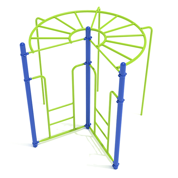 The 270-Degree Rung Ladder is a unique overhead climber that differs from other models due to its distinctive shape. Utilizing standard metal rungs, this climber takes children along a path that forms nearly a complete circle, providing an enclosed and compact structure. Its compact design allows for easy placement on most playgrounds without taking up excessive space. Unlike a straight climber, this model provides a full 360-degree view of the playground surroundings as children traverse the loop, as opposed to just facing straight ahead. Additionally, the loop begins and ends in the same spot, allowing for seamless use as children can easily hop back on once they complete the circle. As with all of our overhead climber options, the 270-Degree Rung Ladder promotes physical activity and encourages children to stay healthy while enjoying playtime.