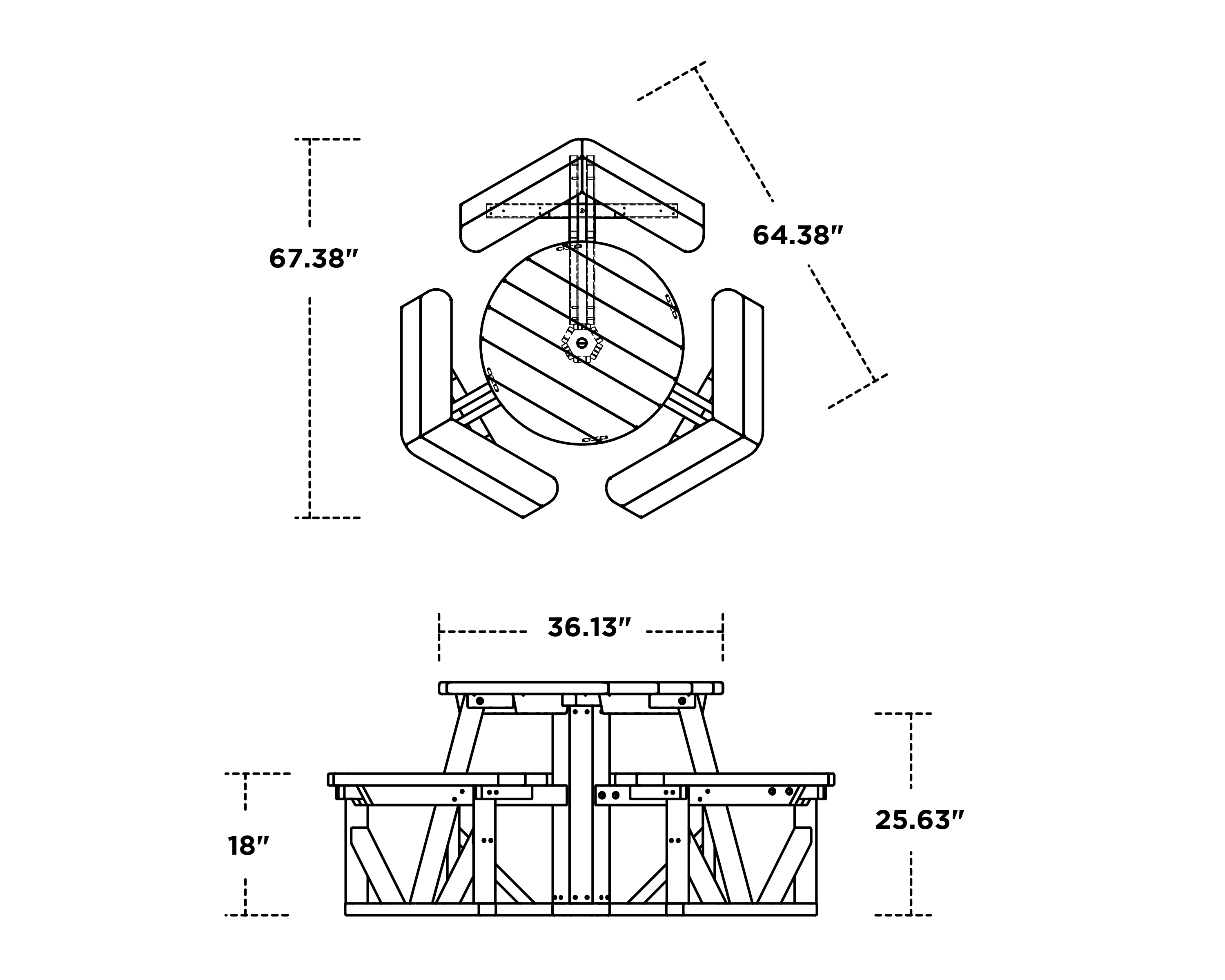 36” Round Recycled Plastic Picnic Table, 335 lbs.