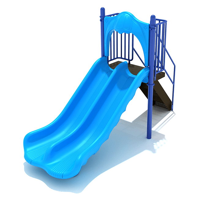 For slightly older children, the 4 Foot Double Straight Slide offers a greater height than its 3 Foot counterpart. It maintains the same level of safety with its two 3.5 inch posts, galvanized steel stairs lined by secure handrails on both sides, and use of materials that can resist almost all natural elements. However, it also increases capacity with its double design allowing twice as many kids to use it at once. Plus, it’s available in numerous color combinations.