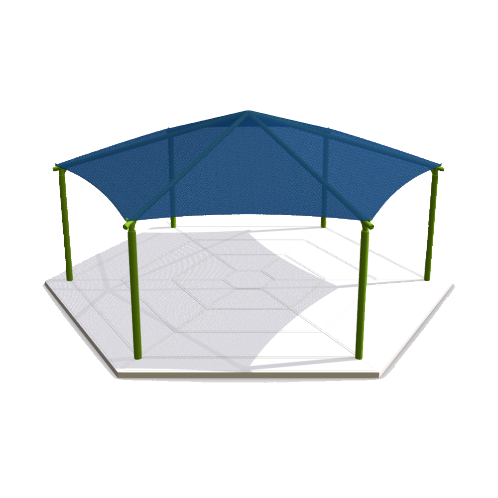 This Hexagonal Shade features a six-column design and a huge coverage area that is ideal for parks, playgrounds, HOA communities, and campuses. Cover picnic tables, park benches, playgrounds, and bleachers. Made with polyethylene fabric, the commercial-grade canopy is fade-resistant and water repellent. Attached to the powder-coated frame via a glide elbow which allows the canopy to be removed before storms with higher than 93 MPH winds. Choose from a range of shade sizes starting at 20' up to 40' in diameter. Entry height of 8' means tables and benches have plenty of headroom. This listing is for Inground mount but we offer surface mounting as well.