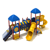 Barrington Ridge park playground equipment has a bright and charming appearance that will capture the hearts of children before they even step on it. The Transfer Station Stairs provide easy accessibility, leading children to a musical area equipped with a Chime Panel, Percussion Panel, and Single Drum. Encouraging collaboration and creativity, kids can make their own musical melodies and beats to share with their friends. And as they continue their journey, they will discover a Math Panel and a Spelling Panel, adding an element of educational exploration to their playtime. The structure also features three thrilling slides with different features to please a diverse group of children. Our 4-foot Tube Slide and Straight Slide provide quick and enjoyable rides for younger children, while the larger Spiral Slide offers an exhilarating experience for those who dare to climb up to it. And at the heart of the structure lies the Covered Bones Bridge, complete with a colorful and decorative roof, making it the perfect spot for imaginative play and endless adventures. Come and experience Barrington Ridge for yourself and see your little ones light up with joy as they explore and play on this amazing play structure.