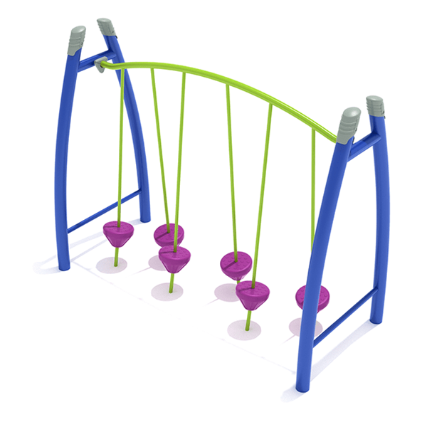 The Curved Post Tilted Pebble Bridge is a top-of-the-line addition to any commercial playground! This structure not only provides an exhilarating challenge for dexterity and coordination, but also offers a fun stepping game for little ones. Plus, it's a fantastic way to accelerate the development of vestibular coordination in children. We all know the importance of engaging balance systems and testing coordination skills through play. That's why the Curved Post Tilted Pebble Bridge is a must-have for any organization looking to promote physical development in youngsters. The journey across the bridge's platforms is a thrilling, yet manageable feat for children, boosting their confidence with each successful maneuver. Not only is this structure designed to be effortful and achievement-worthy for kids, but it also offers various options for different age groups. Smaller children can navigate the path step by step, while bigger kids can challenge themselves by traversing the path side by side along the outside edges of the platforms. With six tilted steps arranged in a thoughtful way, every child can find their own way to have a blast on the Curved Post Tilted Pebble Bridge.