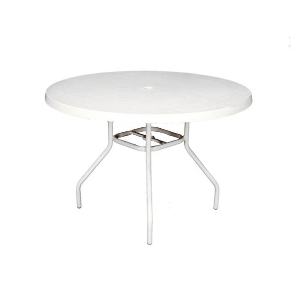 The Round 42″ Fiberglass Dining Table with a 1″ aluminum frame delivers exceptional performance and style for commercial outdoor dining settings. The solid fiberglass tabletop resists salt, chlorine, UV exposure and weathering, offering a refined surface that won’t warp or degrade in harsh pool-side or resort environments. The frame is built from extruded 1-inch aluminum tubing that is powder-coated to resist chipping, rust and corrosion, ensuring long-term stability and minimal maintenance. At a 28″ height (typical) this table comfortably accommodates four diners and integrates easily with outdoor furniture collections. Whether specified for hotels, homeowners associations, resorts or high-use pool-deck venues, this dining table brings together rugged durability, premium aesthetics and the ease of maintenance required for commercial outdoor furnishings.