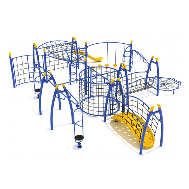 The Greenhorn playground is one-of-a-kind structure is packed with net climbers, ladders, rope bridges, and spinners, all cleverly crafted to create a thrilling obstacle course. Kids who love to climb, jump, and explore will have a blast here! Our overhead and net climbers are designed to test your little ones' strength and agility, while the floating rope bridges and ladders provide an exciting way to navigate between platforms. And let's not forget about the spinners, adding an extra element of fun to every playtime. Not only does Greenhorn provide hours of entertainment, but it's also built to last. Made with top-notch materials and safety in mind, it can withstand even the most enthusiastic play and will remain a beloved spot for years to come. In a nutshell, Greenhorn is the ultimate playground for daring kids who love to challenge themselves and venture into the unknown. So why wait? Come on over and witness the thrill and laughter on your little ones' faces as they conquer this top-notch playground adventure!