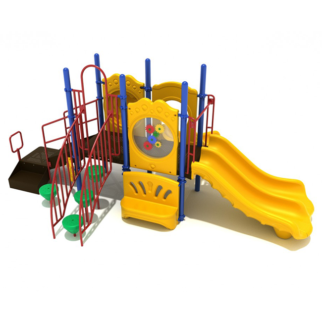 The Mystic playset is the perfect way to introduce your 2-5 year olds to imaginative play! Perfectly suited for pre-schools, elementary schools, and churches, this exciting structure has plenty of opportunities for kids to explore. Climb up the transfer station and stairs and choose between the Right Turn Slide and the Double Slides - the toughest decision they'll make all day! Kids can also test their coordination on the Pebble Climber or use their imaginations with the Ship's Wheel. There's also a Gear Panel and Bench Panel for when they need a rest. For added safety, they can hang onto the rails and take a break. Manufactured with commercial-grade materials and meeting ASTM National safety standards, the Mystic playset will be an adventure for everyone!