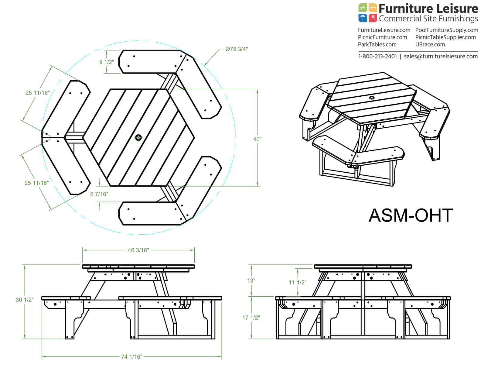 • Dimensions: 74"L x 74"W x 30.5"H