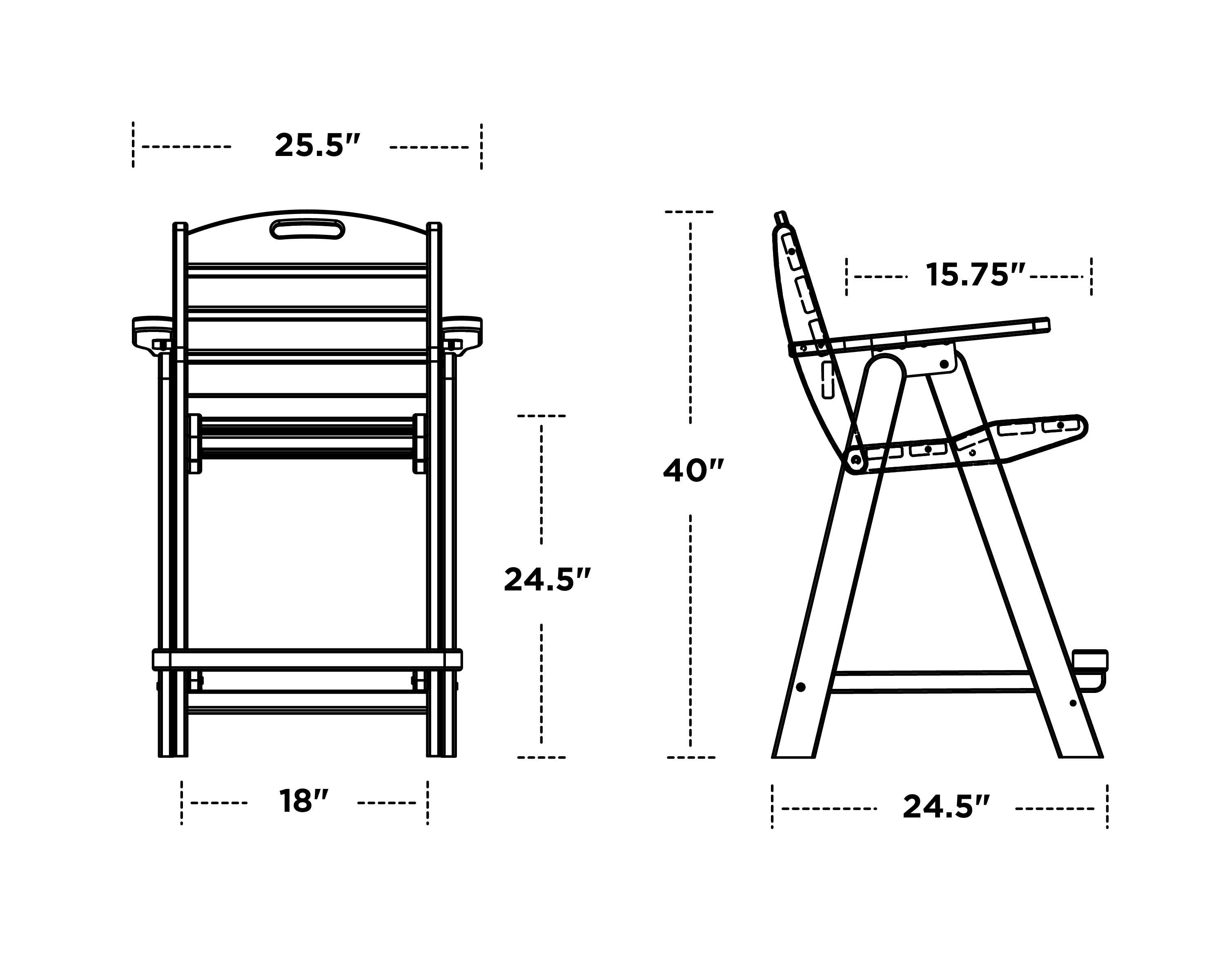 Great Looking Polywood Nautical Style Recycled Plastic Counter Chair for outdoor entertaining. Recycled Plastic Polywood Lumber is made from over 90% post consumer plastic and High Density Polyethylene which is impervious to all types of weather conditions including rain, snow, salt water, sun and ice. Polywood has color fastness and UV inhibitors to reduce fading. Polywood never splinters, warps or corrodes and is tougher and more resilient than treated wood. Quantity Discounts Available.