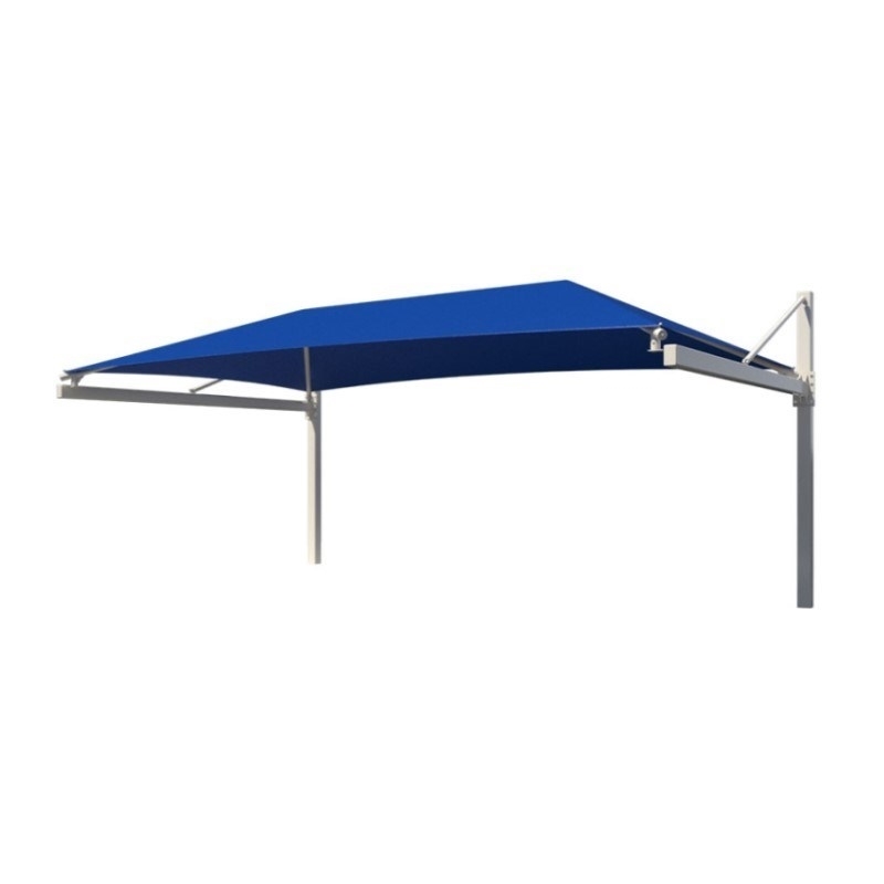 This Suspended Cantilever Shade Structure is perfect for covering large areas like car lots, walkways, bus stops, dugouts, and parks with its 16-foot entry height. The suspended frame is powder-coated to protect against cracking, peeling, and fading with a wind rating by itself of 150 MPH. With fabric, this structure can withstand wind loads of 93 MPH. The glide elbow attachment system allows the canopy to be easily removed for higher wind speeds to prevent damage. Available in many popular, long-lasting colors. Pick between inground or surface mounting, whichever best suits the location. Engineering drawings can be added to the order upon request. Call our office today for a custom quote on the Suspended Cantilever Shade Structure.