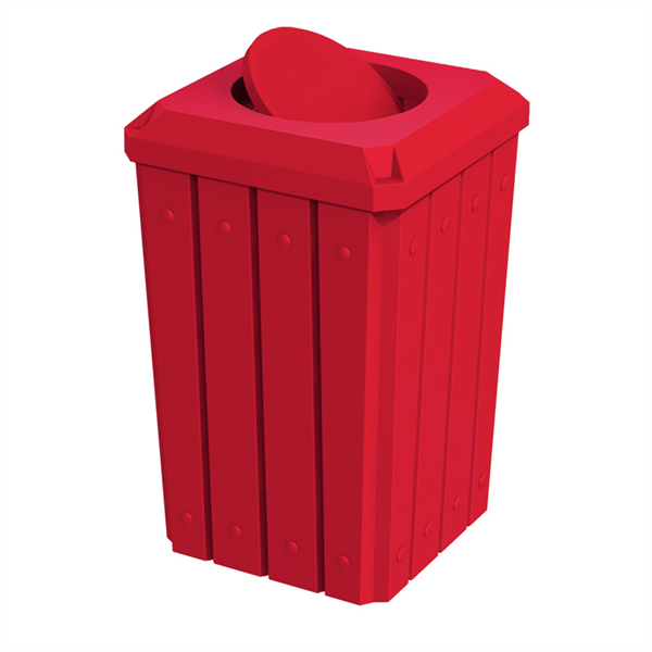 This unique Signature 32 Gallon Receptacle features a standard liner and a bug barrier top. This “stay-closed” top prevents bugs from entering the receptacle yet still convenient enough to open for customers. Our slat design Signature receptacles are constructed of commercial-grade plastic that is made in the USA. This receptacle can be mounted on a pedestal for resistance to vandalism.