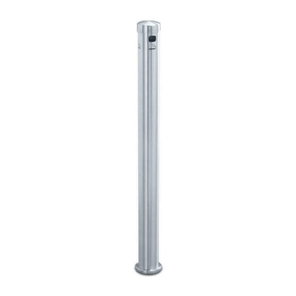 This Mount Smokers Outpost is sleek, modern, and durable solution for cigarette disposal. Available in either aluminum or satin brass. Measures 42 in. in height and is completely weatherproof and fireproof. Made of solid 1/8 in. thick seamless aluminum or stain brass and has a large capacity and is easy to empty. Comes complete with a 4 in. In-ground mounted base with snap-bottom lock to secure tube to base. Features a concealed snap-button lock secures the hand spun cover. Cover has an internal cigarette snuffer panel to extinguish cigarettes and cigars.