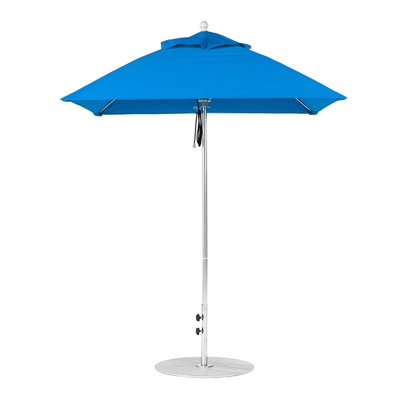 This 6.5 foot square market umbrella includes ½″ fiberglass ribs, a 1.5″ diameter coated aluminum pole, and 9 oz. marine grade canopy. Easy to use manual pulley lift system. Available in various frame colors and fabric colors that will compliment your decor. Our commercial grade fiberglass market umbrellas are resistant to the sun, wind, and rough handling.